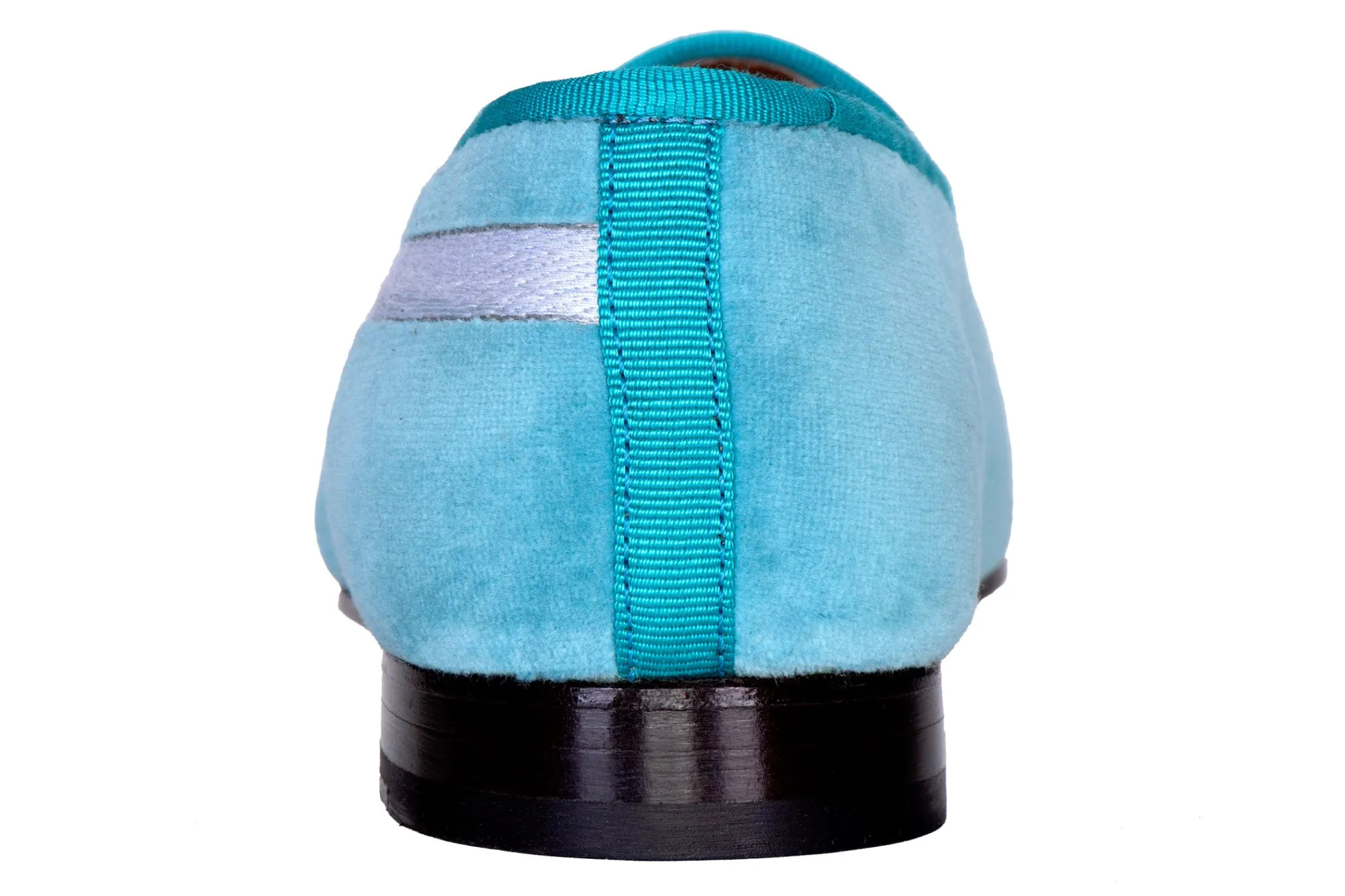 Our gift bow turquoise velvet slipper features a rich Spanish cotton-velvet with a coordinating turquoise grosgrain. Meticulously Hand-crafted in Spain. Leather lined to provide additional support and comfort. The stacked wooden heel is 3/4″ in height. Leather soled. True to American sizing.