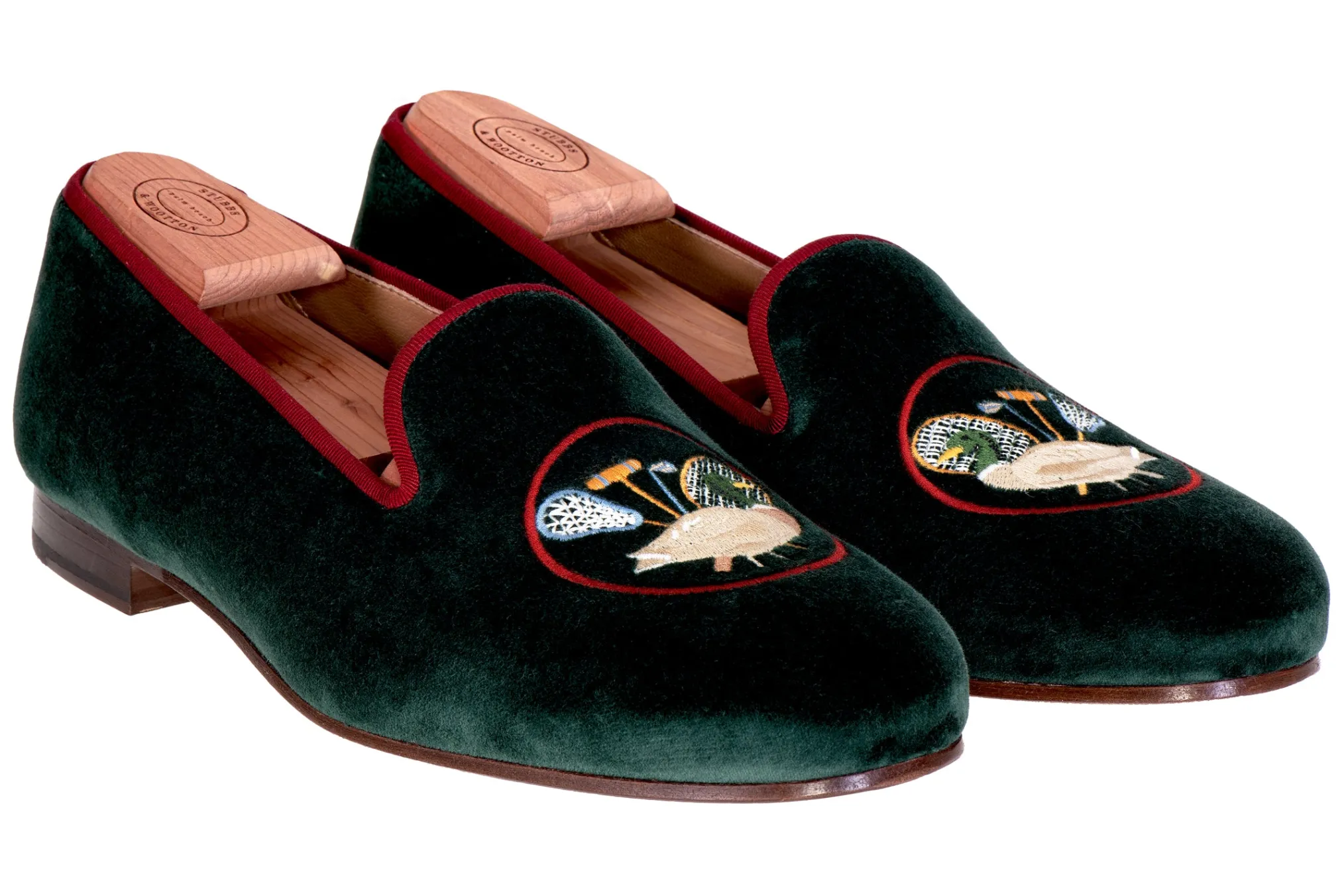 Our Prep hunter slipper features a rich cotton velvet fabric with a contrasting red grosgrain. Meticulously Hand-crafted in Spain. Leather lined to provide additional support and comfort. The stacked wooden heel is 3/4″ in height. Leather soled. True to American sizing.